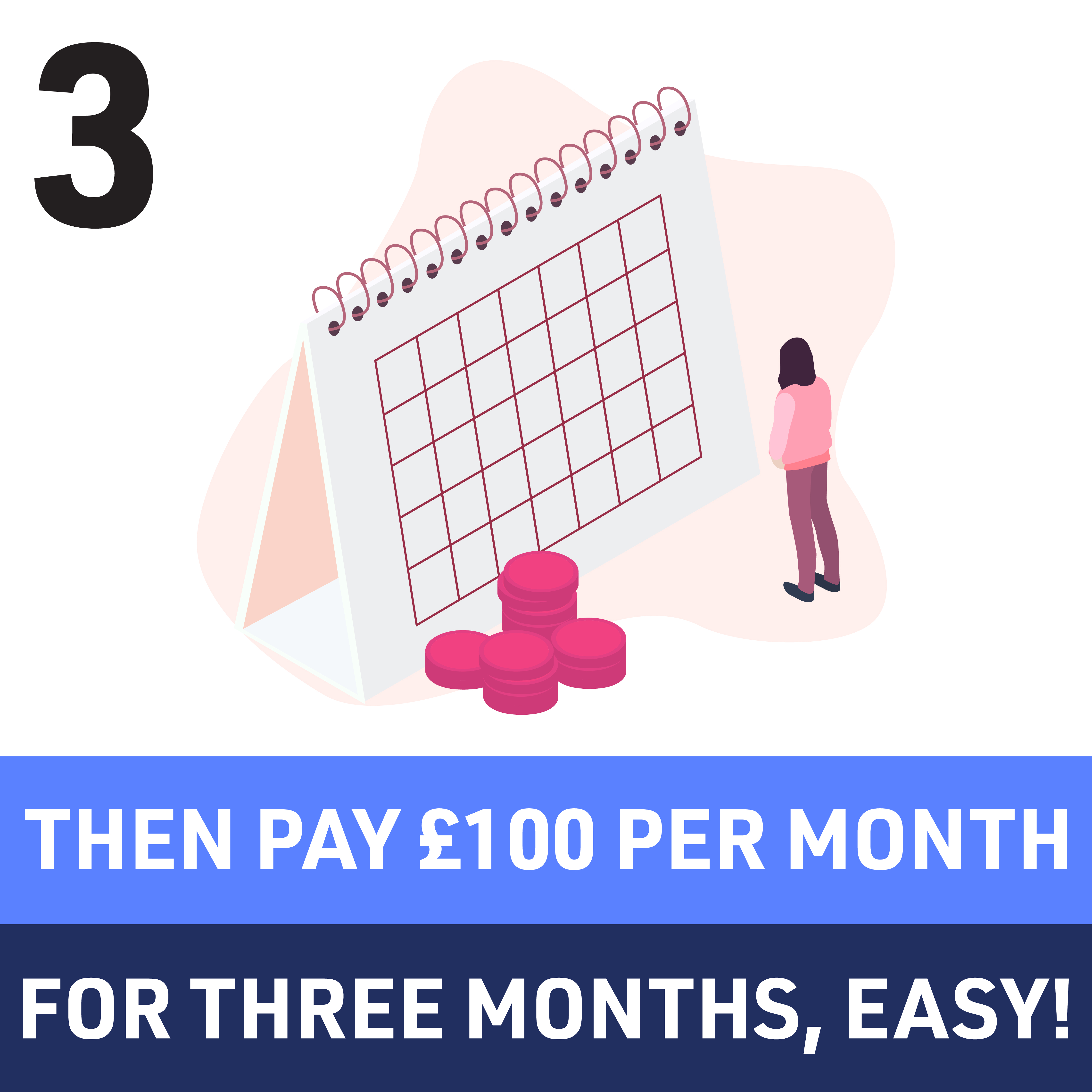 You will pay a deposit of 25% of the total bill via your debit card on the day, followed by three more equal monthly payments from the debit card.