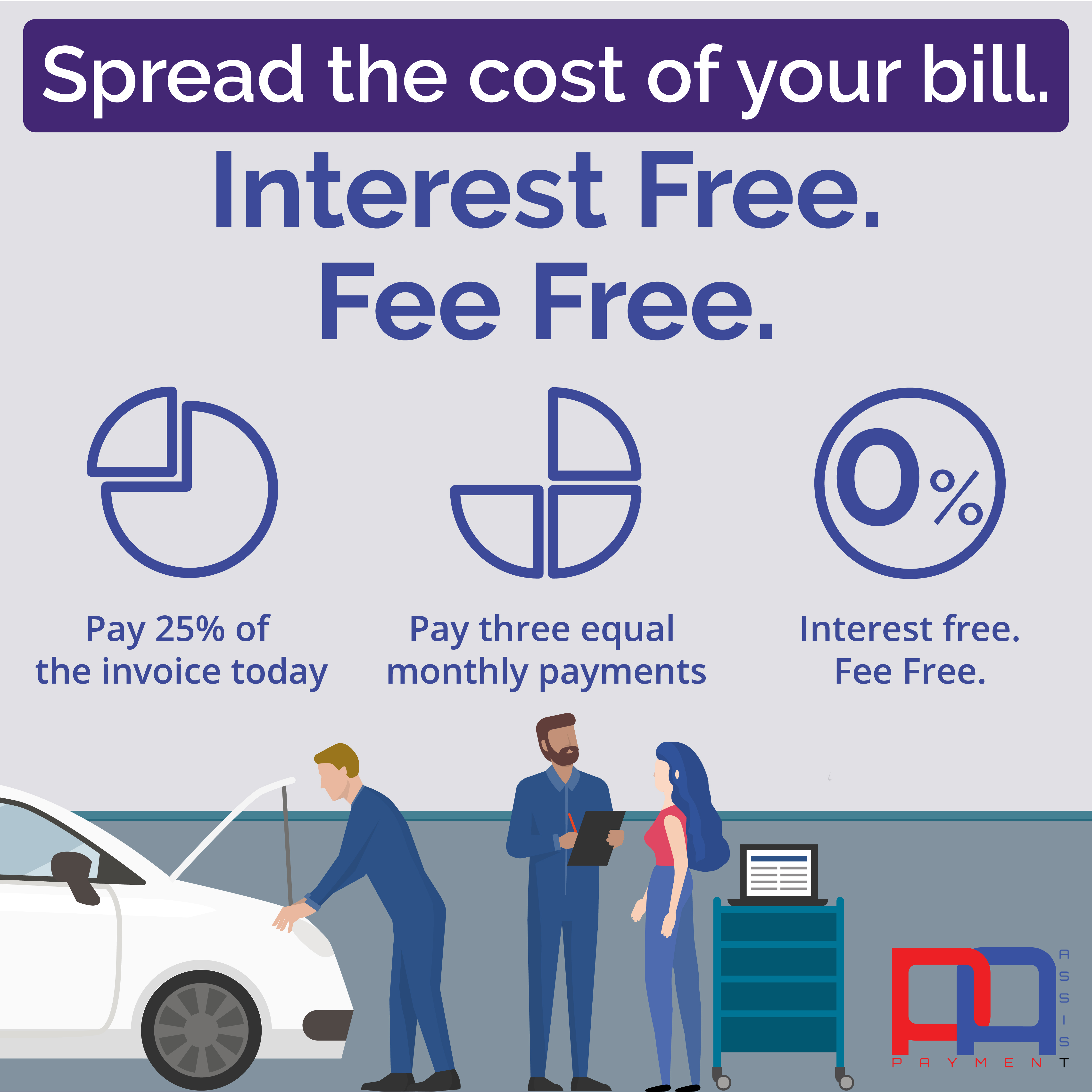Payment Assist are here to help, and spreading the cost of this work means that your car is roadworthy and you can remain driving safely, whilst paying for the work over a 3-month period.